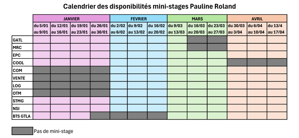 La période des mini-stages se déroulera du 5 janvier au 17 avril 2026.